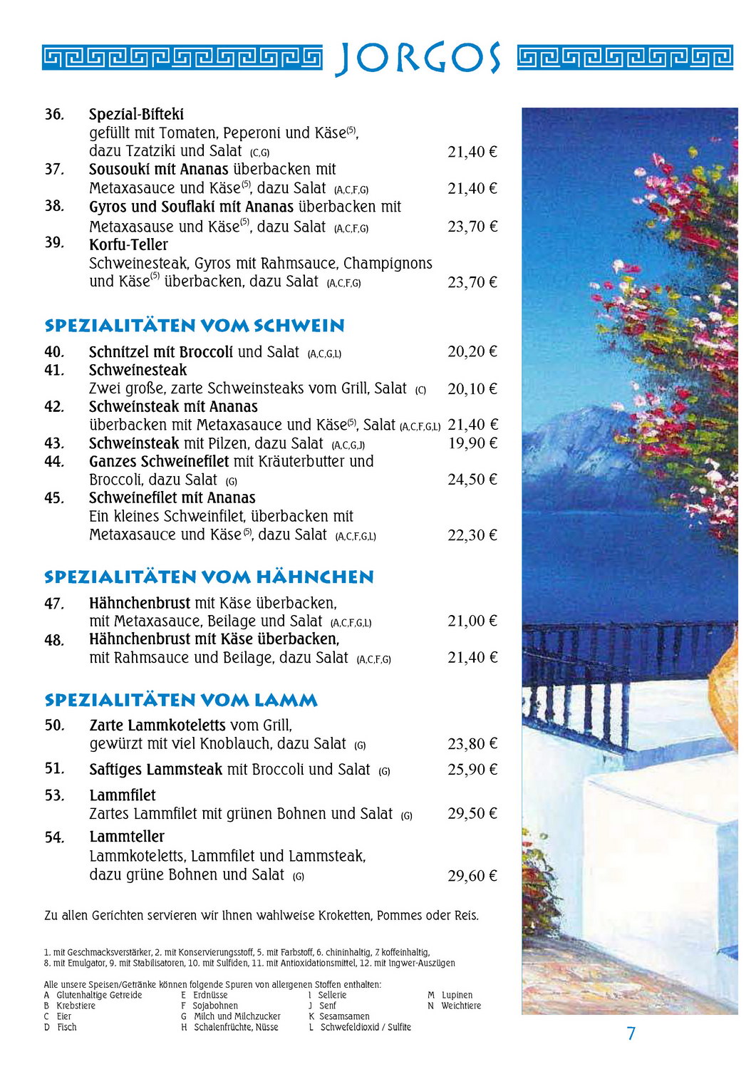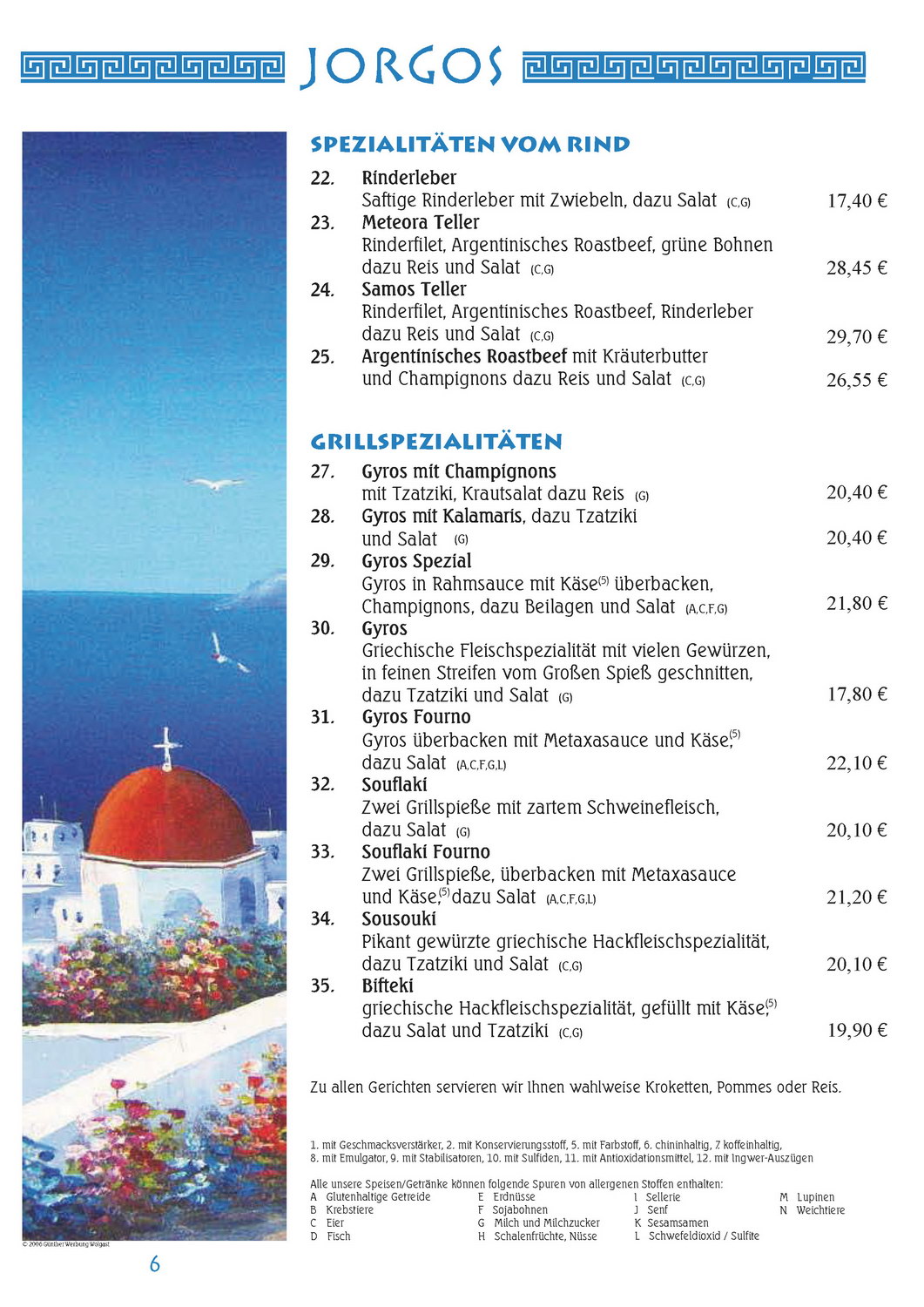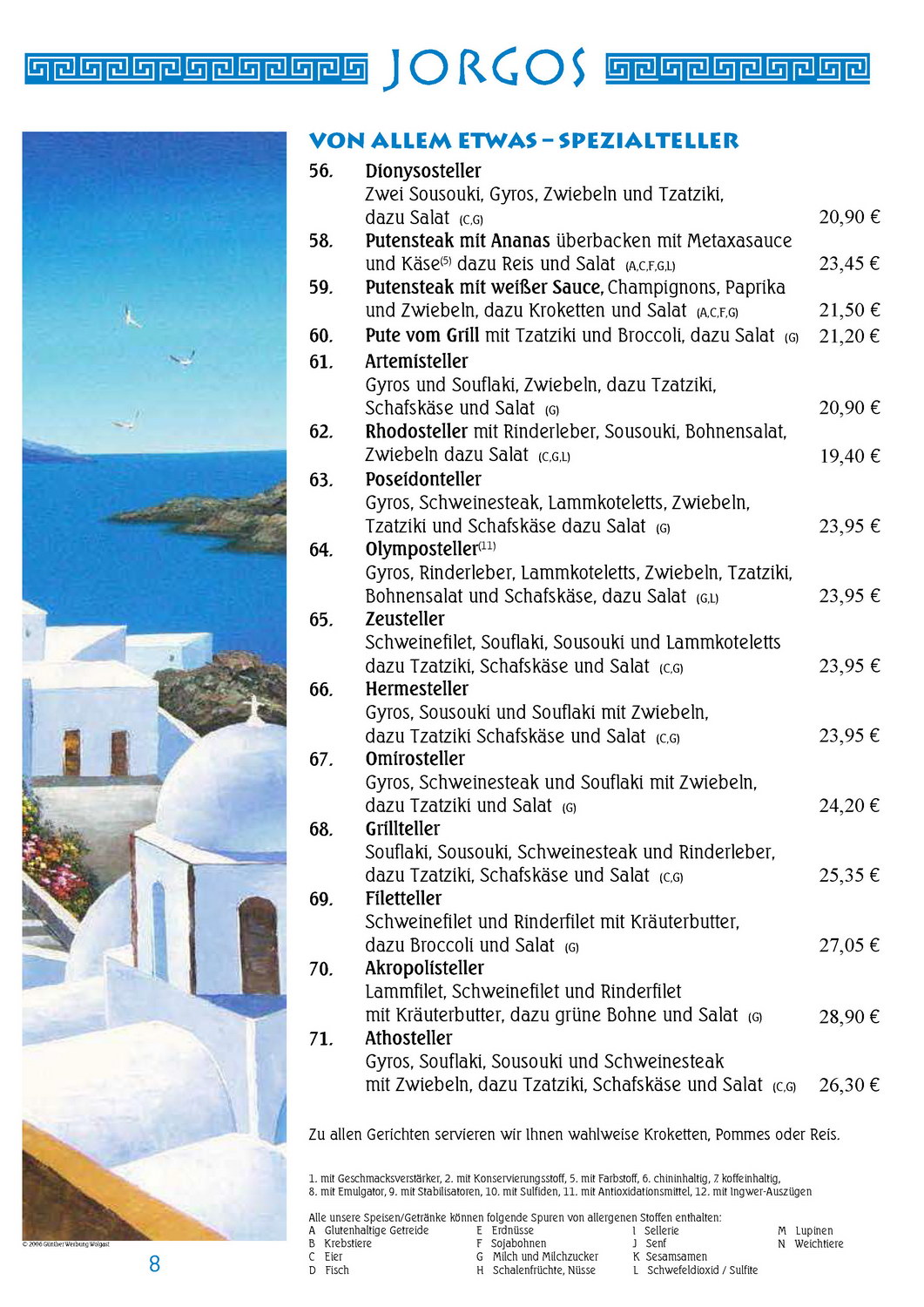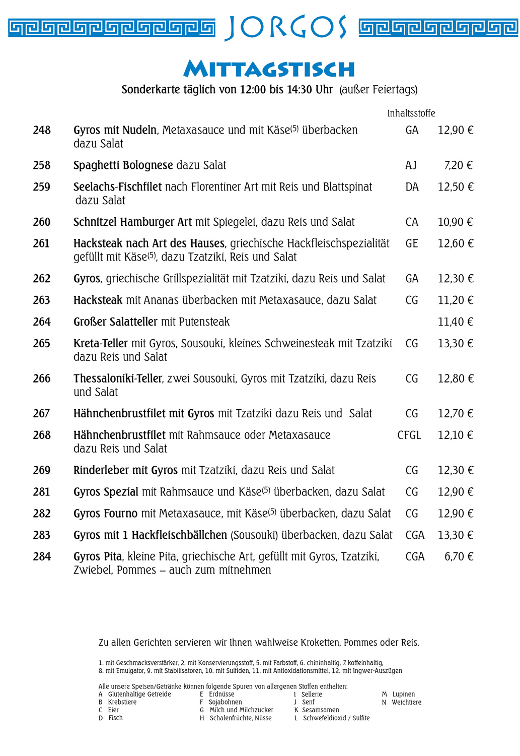Speisekarte JORGOS
