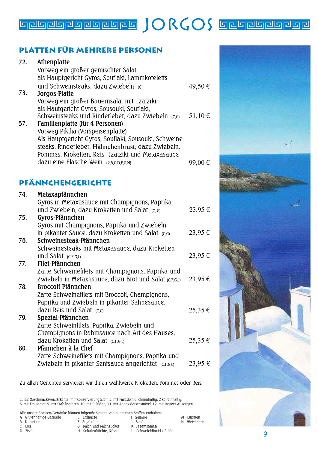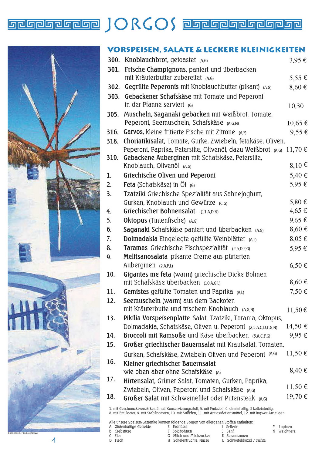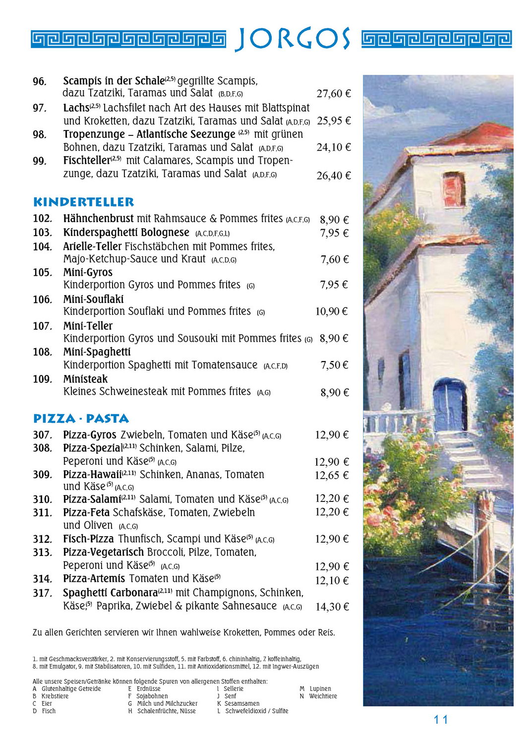 Speisekarte JORGOS