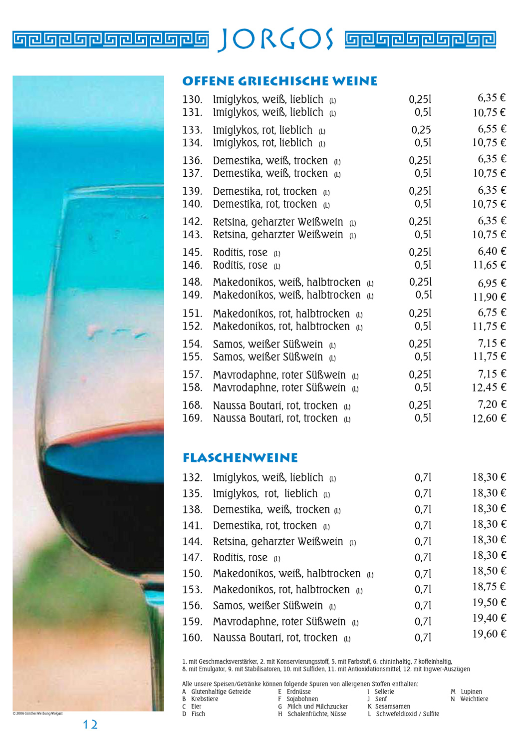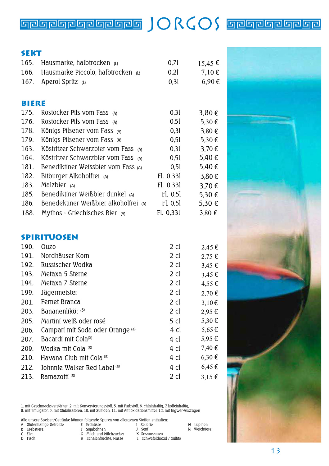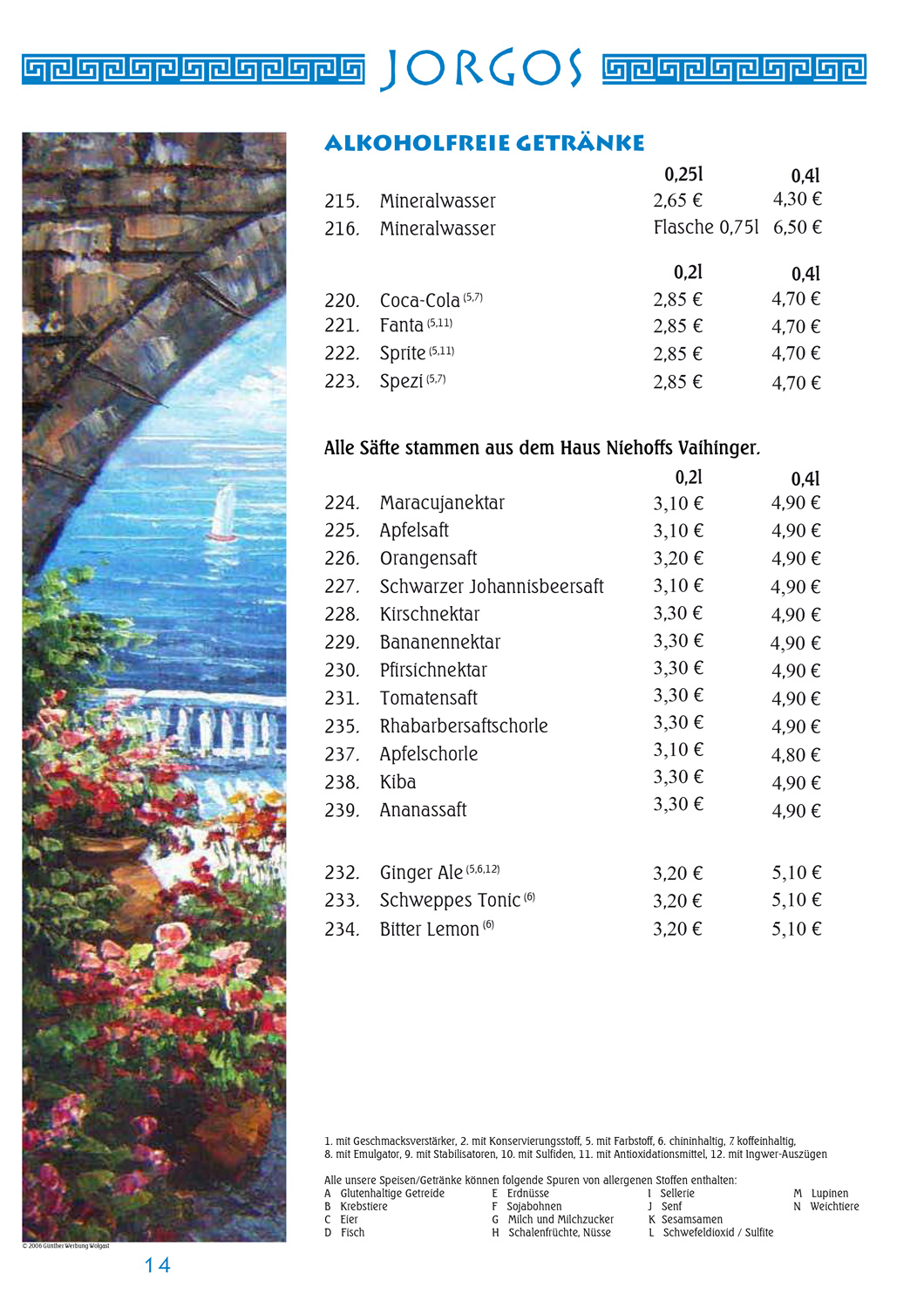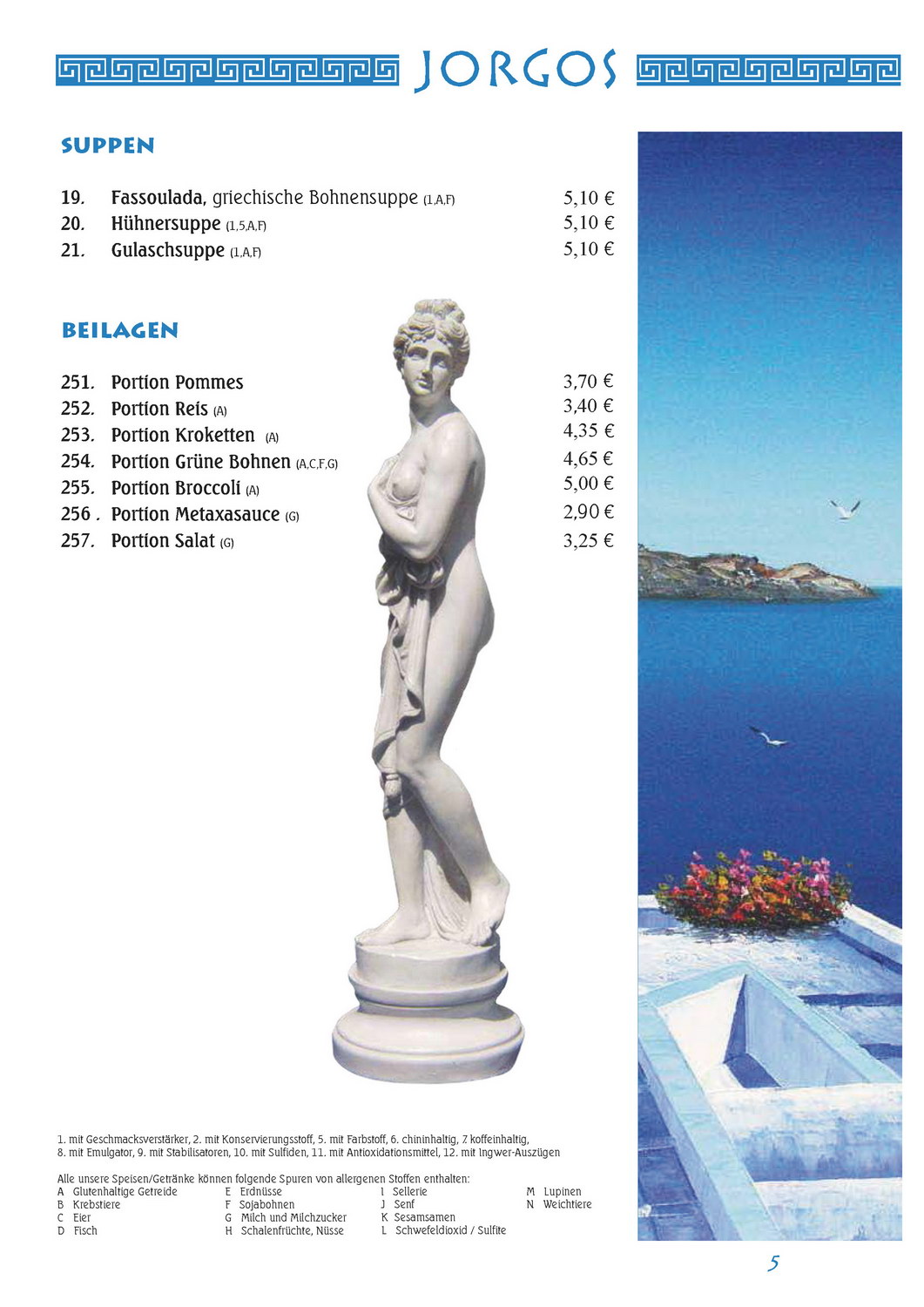 Speisekarte JORGOS